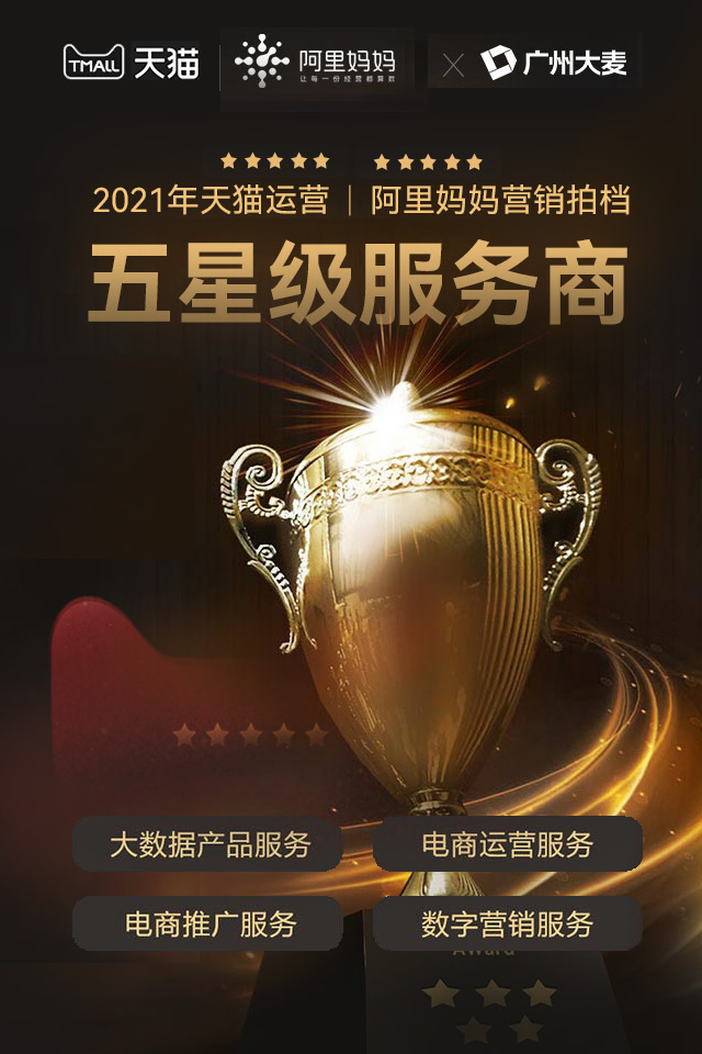 天猫五星级认证服务商,阿里全域运营及京东、拼多多、抖音等多方认证服务商;获得广东省电子商务100强企业、互联网新商业十年高质量发展企业等称号